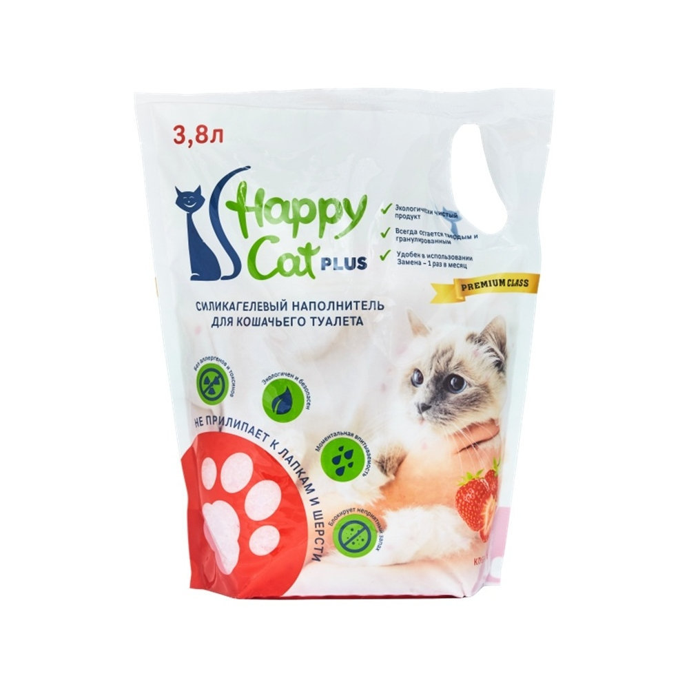 Happy Cat Клубника силикагелевый впитывающий 3.8 л-удалить