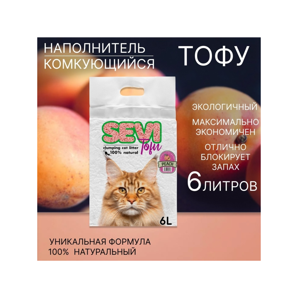 SEVI Tofu Персик комкующийся 6 л - AZ00322