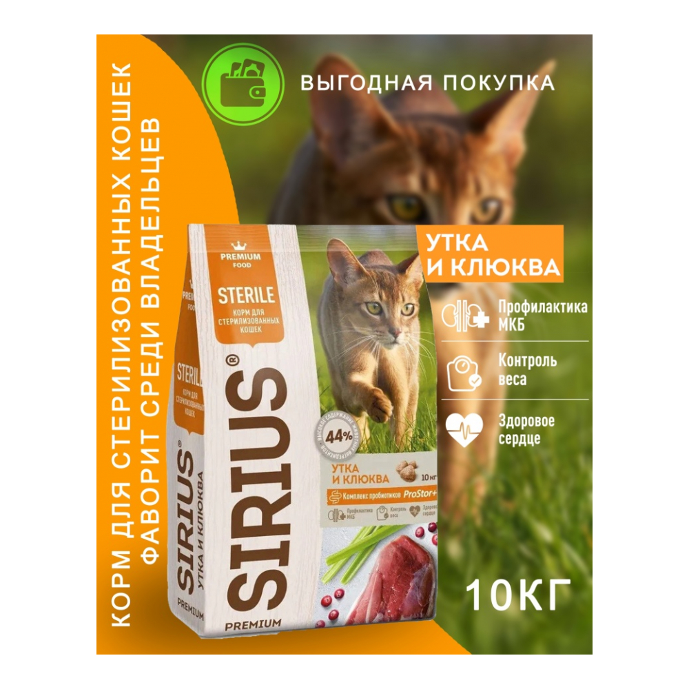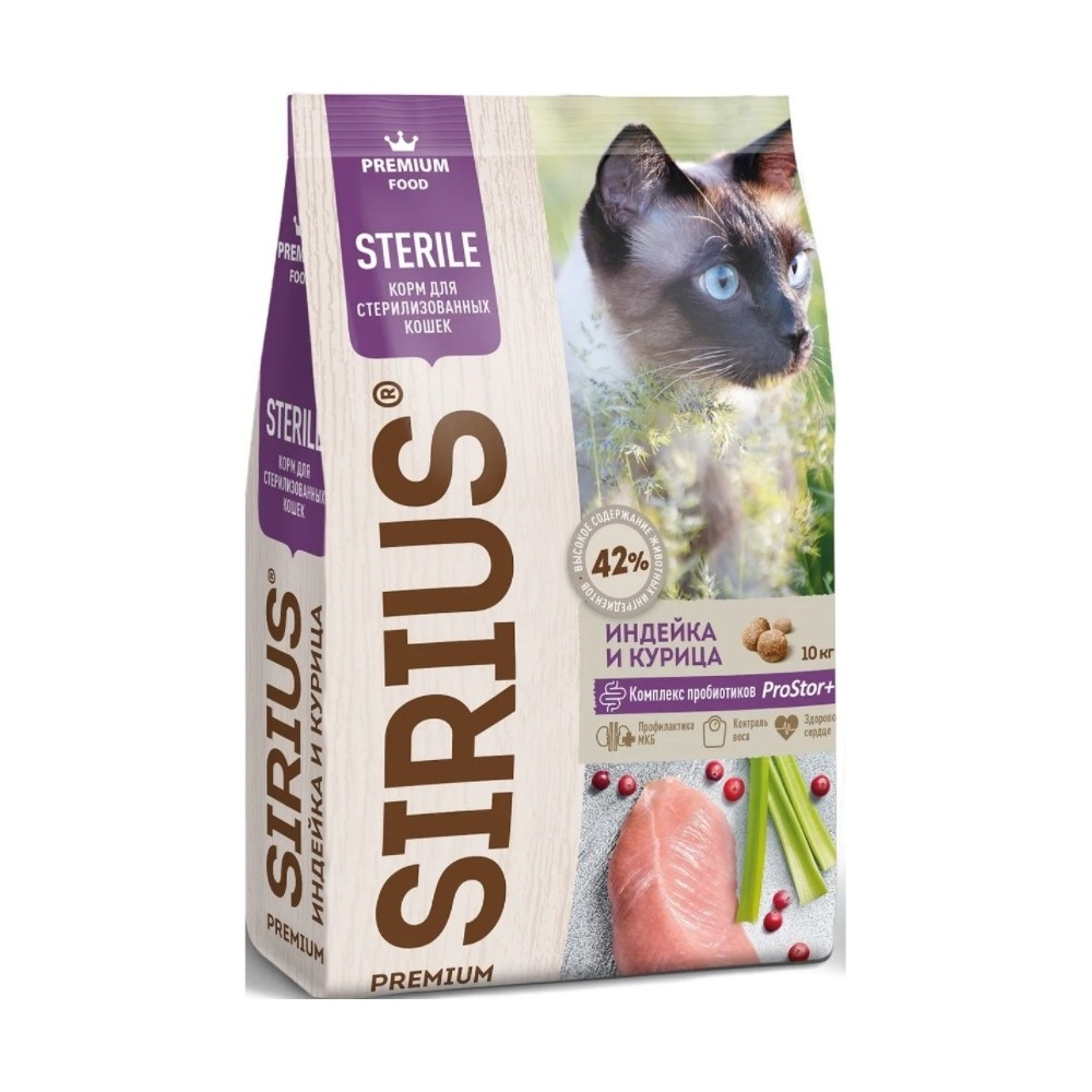 Sirius Sterile для стерилизованных индейка, курица 10 кг - 4602009945366