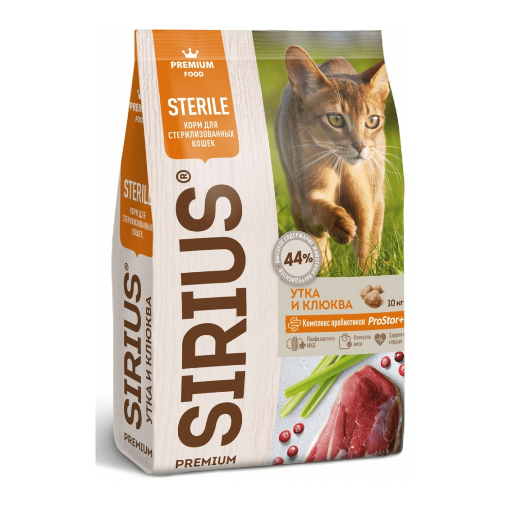 Sirius Утка с клюквой для стерилизованных утка, клюква 10 кг - 4602009945397