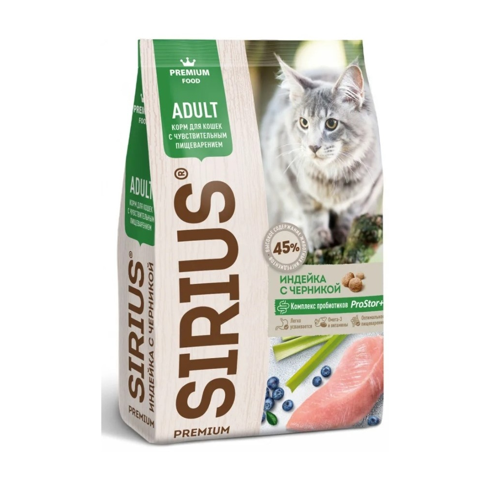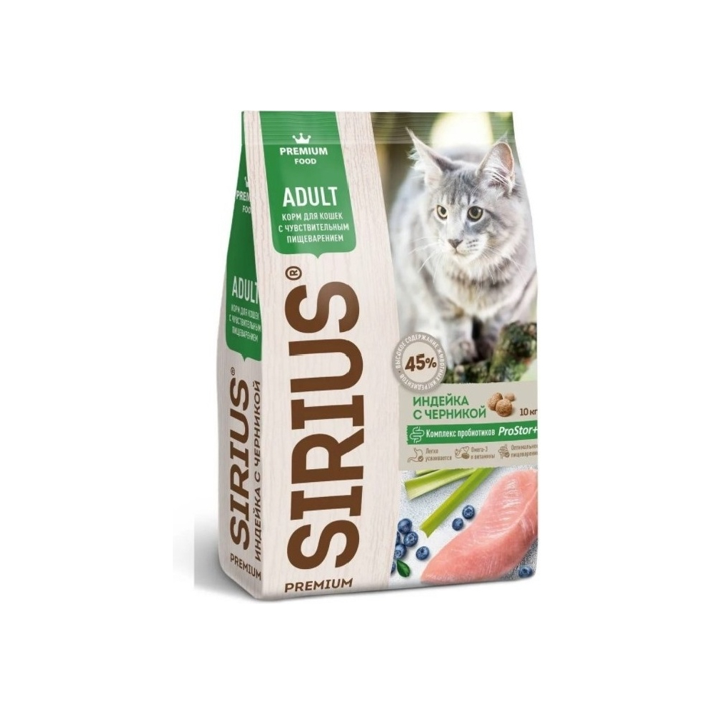 Sirius Adult при чувствительном пищеварении индейка, черника 10 кг - 4602009945427