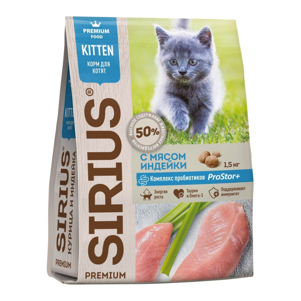 Sirius Kitten для котят индейка 1.5 кг - 4602009945328