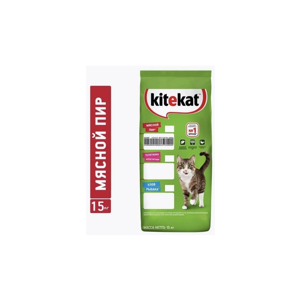 Корм Kitekat Мясной пир мясное ассорти 15 кг 4607065373337