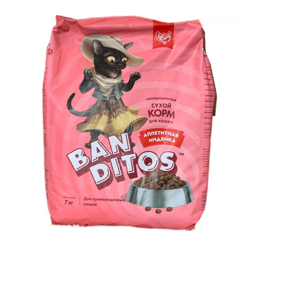 BANDITOS NDC02-1-07000BANDITOS Полнорационный сухой корм с индейкой для взрослых кошек всех пород с 12 мес, 7кг 4627079682744
