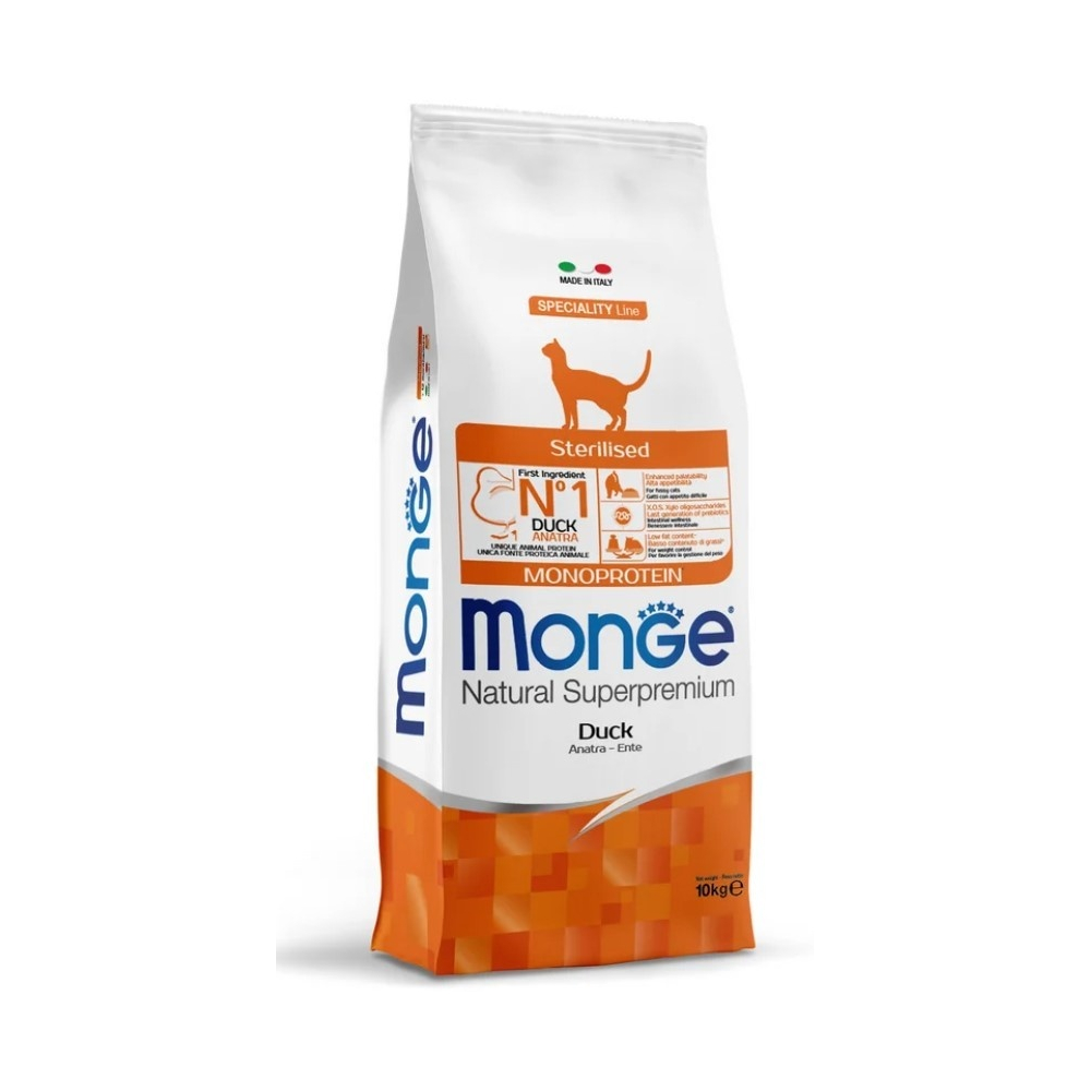 Корм Monge Sterilised Monoprotein злаки, утка 10 кг - 8009470056182