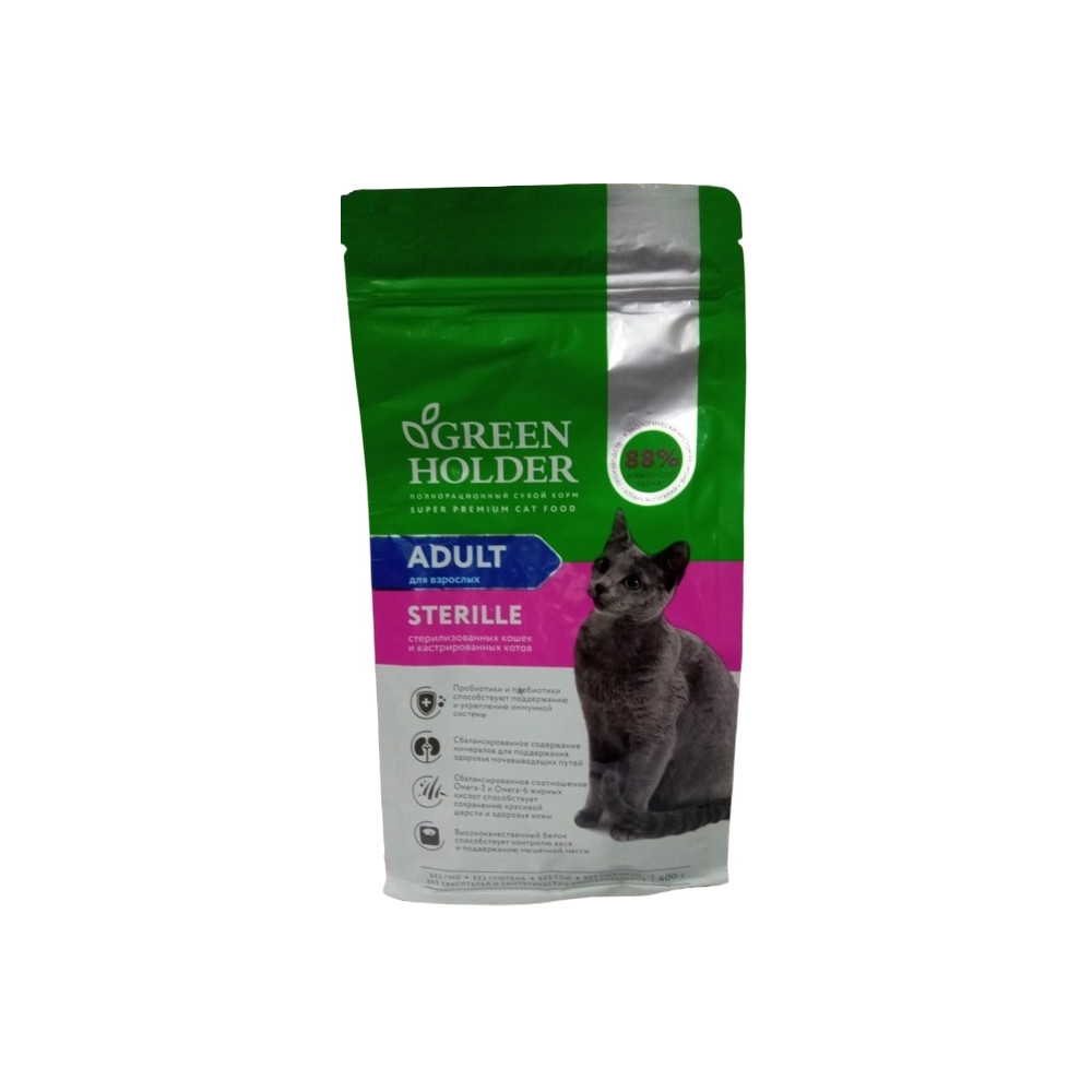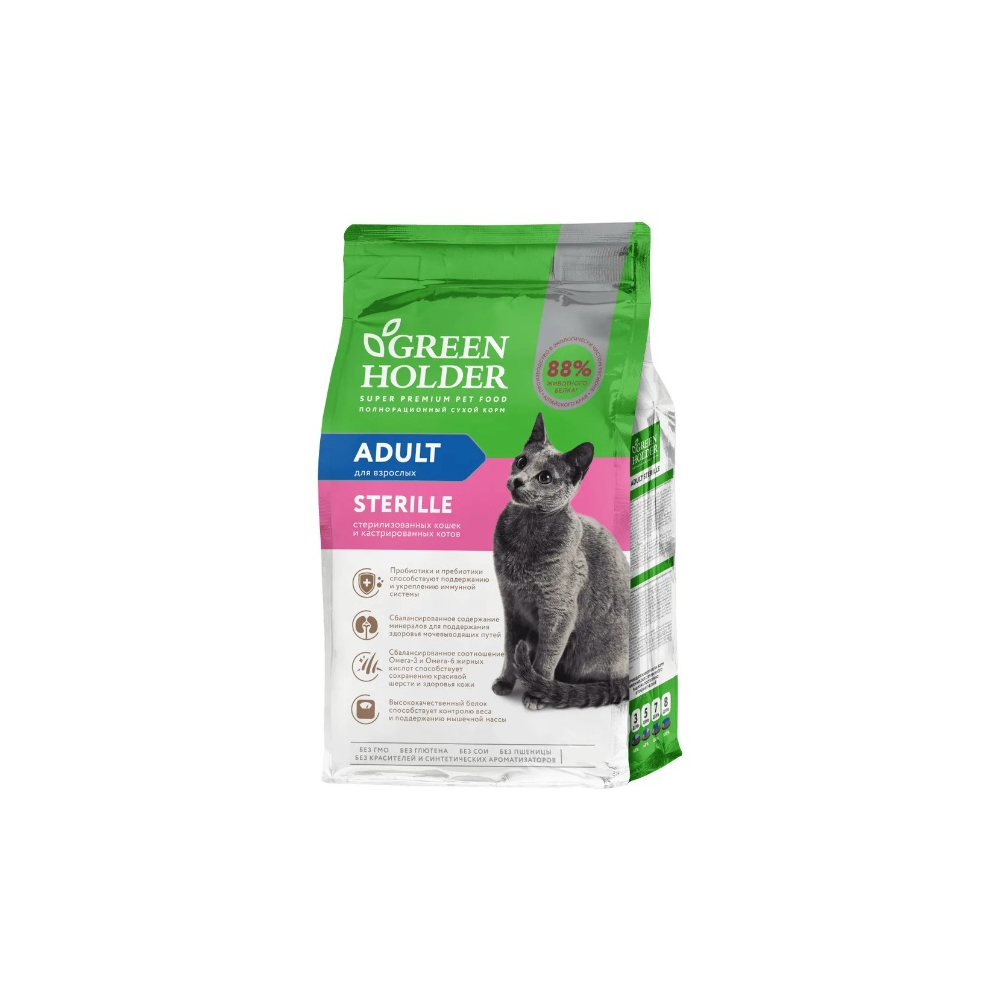 Возраст животноговзрослые (1-6 лет) Породадля любой породы Особые потребностидля стерилизованных/кастрированных Ветеринарная диетаотсутствует Основной ингредиентптица Составдегидрированное мясо (курица, индейка), цельнозерновые злаки, клетчатка растительная, жир птицы, натуральная вкусоароматическая добавка, витамины (A, D3, E, B1, B2, B3, B4, B5, B6, B12, Bc, H) и микроэлементы (магний, железно, медь, цинк, марганец, йод, селен), высушенная мякоть сахарной свеклы, пивные дрожжи, таурин, антиоксидант, разрешенный к применению в РФ ХолистикНет ЛинейкаOptisafe для стерилизованных кошек с курицей и индейкой Вес упаковки1.3 кг Страна производстваРоссия Рекомендации по кормлениюрацион необходимо корректировать в зависимости от погодных условий, уровня активности и физического состояния, всегда должен быть доступ к свежей чистой питьевой воде Условия храненияв сухом прохладном месте Срок годности18 месяцев Вкусиндейка, курица