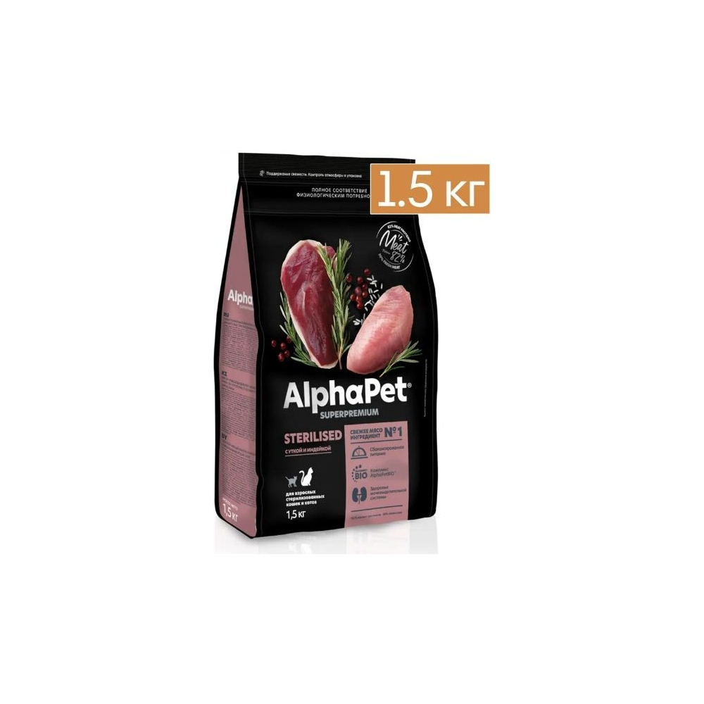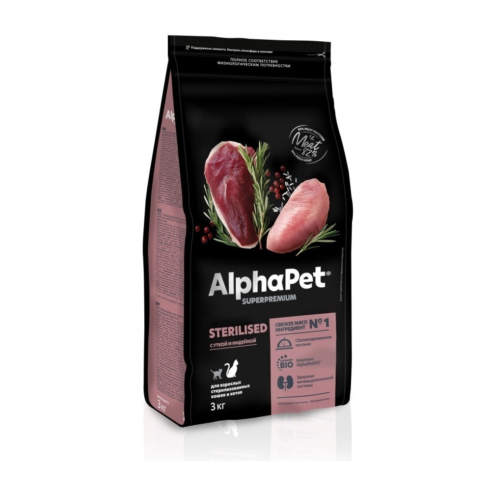 Корм AlphaPet Superpremium Sterilised для стерилизованных утка, индейка 3 кг 4670064651713