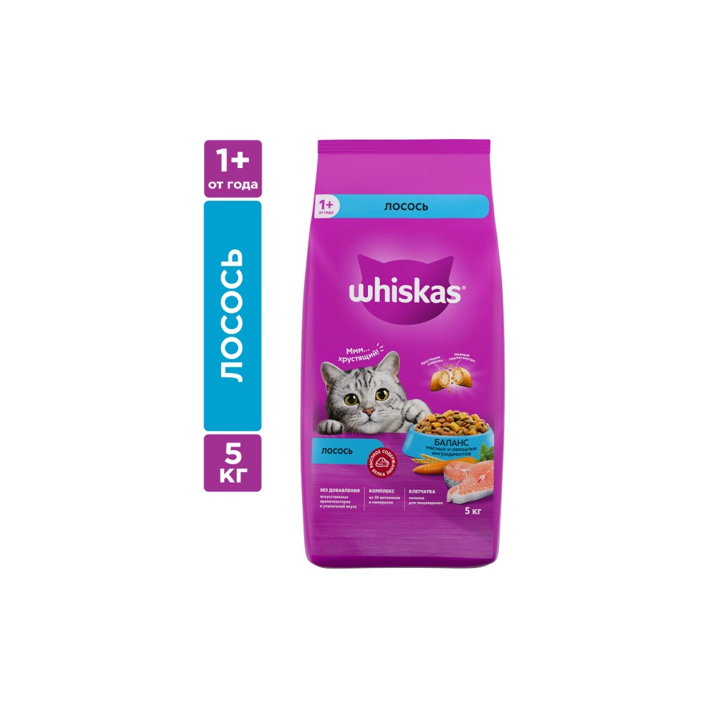 Корм Whiskas подушечки курица, индейка 5 кг 4607065375317