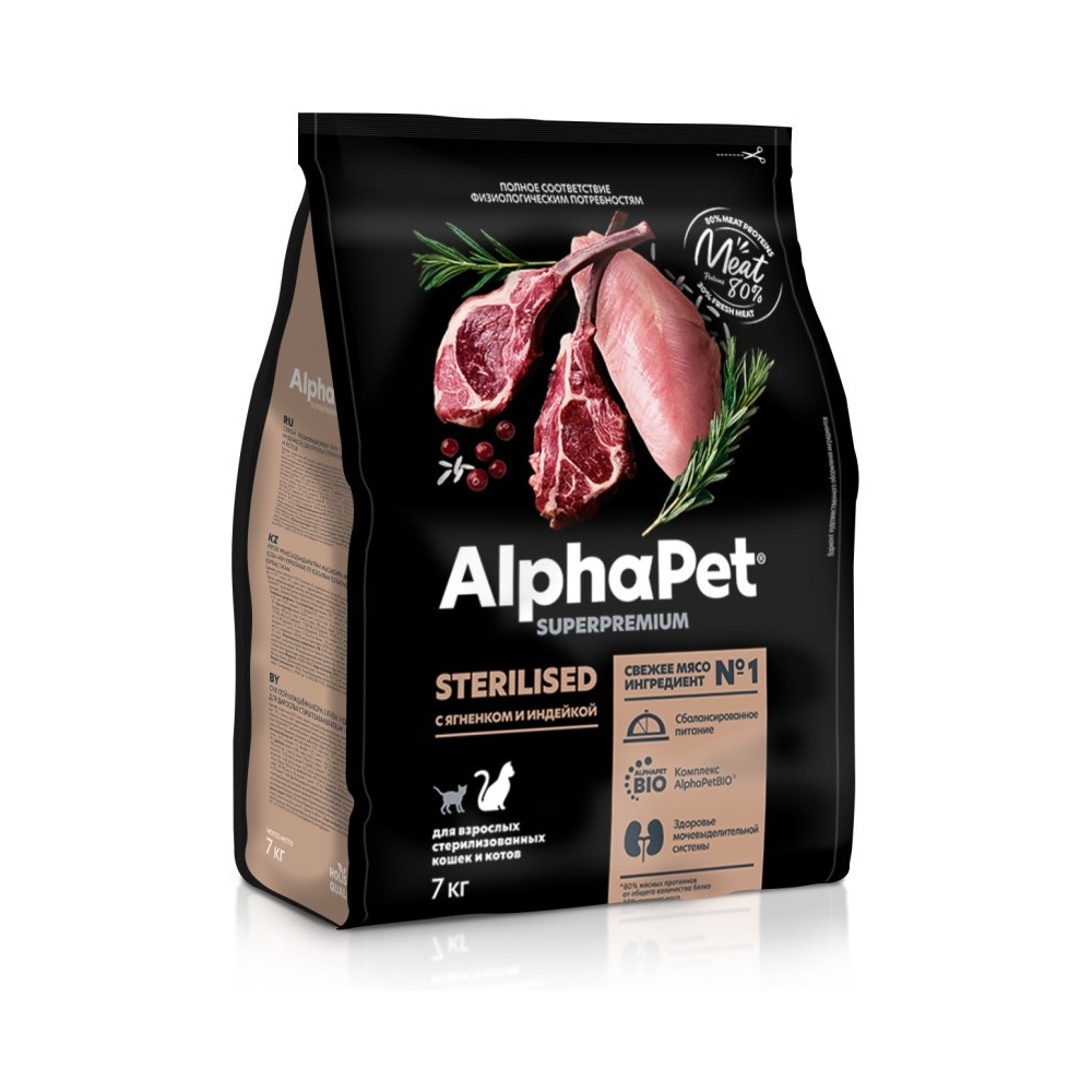 AlphaPet Superpremium (АльфаПет) 7кг с говядиной и печенью сухой для взрослых стерилизованных кошек баранина 7 кг 4670064651911