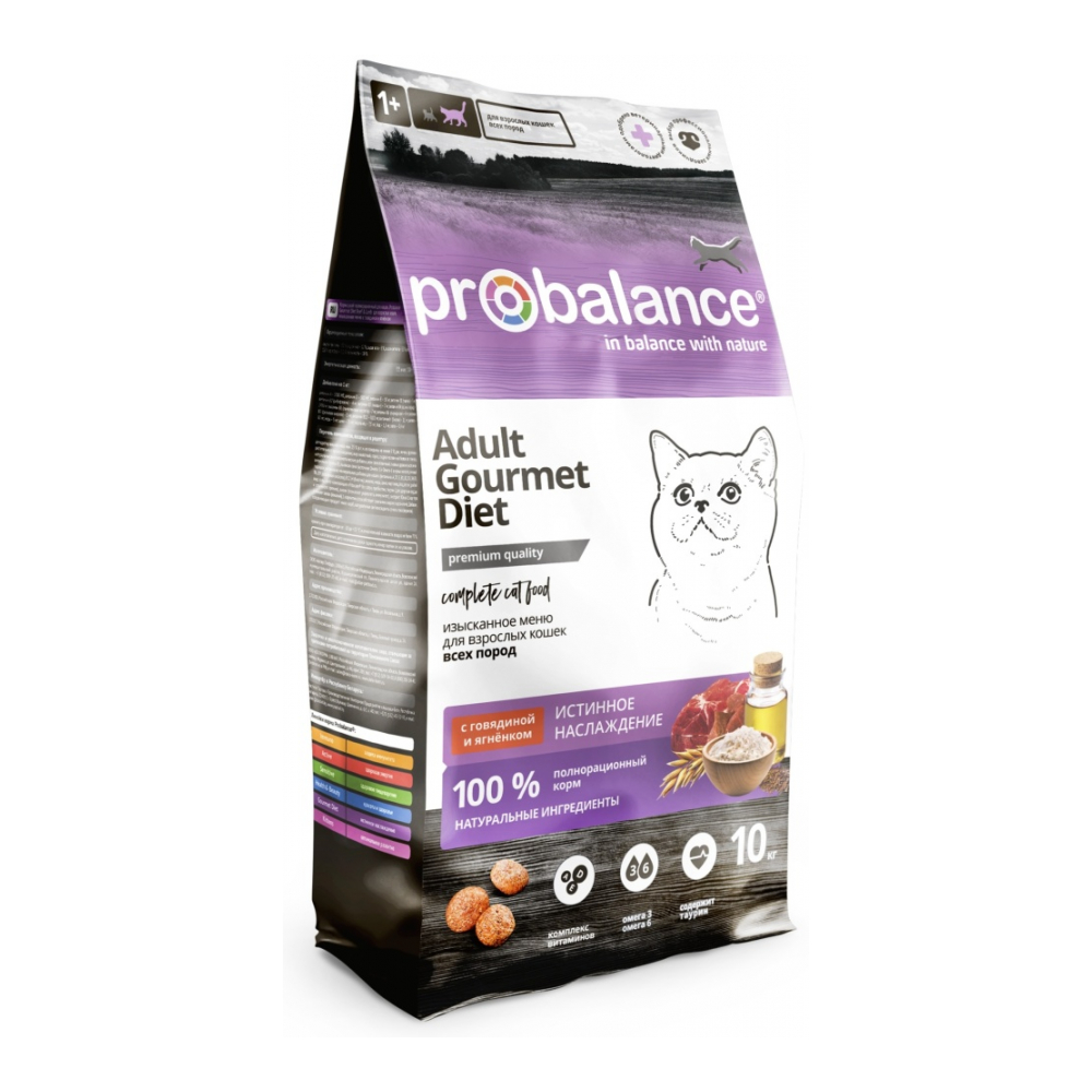 Корм Probalance Adult Gourmet Diet для взрослых говядина, ягненок 10 кг 4640011982139