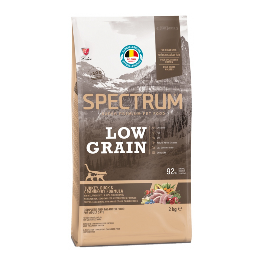 SPECTRUM Low Grain Adult для взрослых индейка, утка, клюква 2 кг AZSP-1