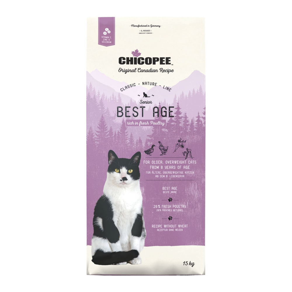 Корм Chicopee CNL Senior Best Age для пожилых кошек с птицей 15 кг