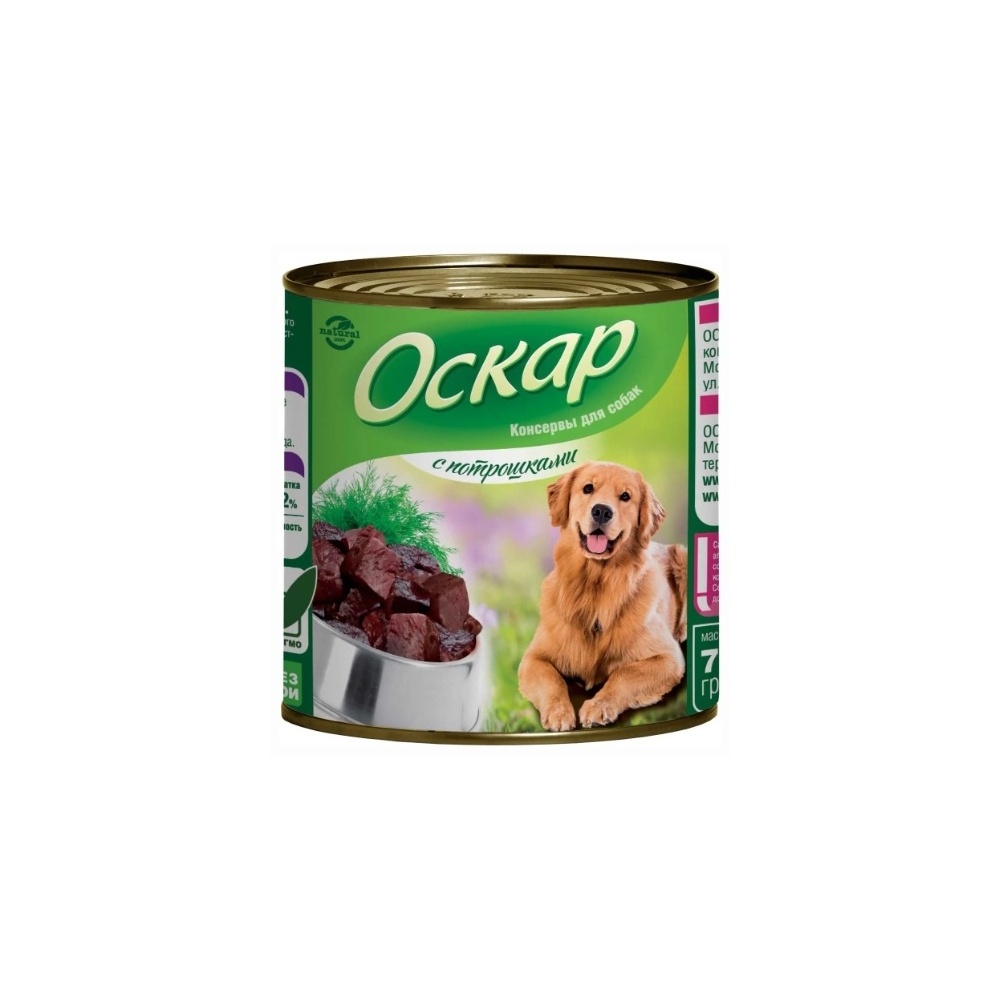 Влажный корм премиум класса ОСКАР для собак всех пород разработан с учетом рекомендаций ведущих специалистов в области диетологии и питания. Суточная норма: 40-60 г на 1 кг веса животного. Энергетическая ценность на 100 грамм: 110 кКал/460 кДж. Содержание питательных веществ в 100г: протеин – 10%, жир - 6%, углеводы – 4%, клетчатка – 0, 2%, зола – 2%, влага – до 75%, кальций – 130 мг/кг, фосфор - 100 мг/кг, витамин А – 200 МЕ/кг, витамин D3 - 14 МЕ/кг, витамин Е – 2 мг/кг. Влажный корм ОСКАР не содержит искусственных красителей и консервантов, производится по научно-обоснованной рецептуре, обеспечивающей оптимальный баланс питательных веществ, витаминов и микроэлементов, необходимых Вашему питомцу. Наш корм изготавливается только из тщательно подобранных натуральных ингредиентов, прошедших строжайший ветеринарный и внутренний контроль на всех этапах производства.
